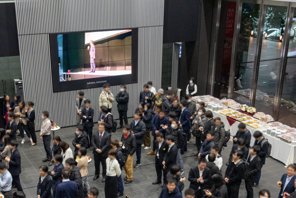 アキバ・スクエアの屋内スペースとオープンスペースにて、表彰式+懇親会として立食パーティーを開催いただきました。